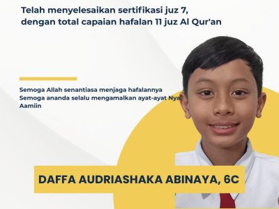 Daffa Audriashaka Abinaya Kelas 6C, Total Capain Hafalan 11 Juz Al Qur'an
