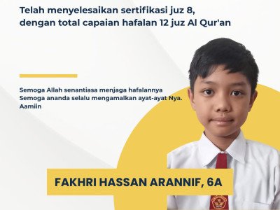 Fakhri Hassan Arannif Kelas 6A, Total Capain Hafalan 12 Juz Al Qur'an