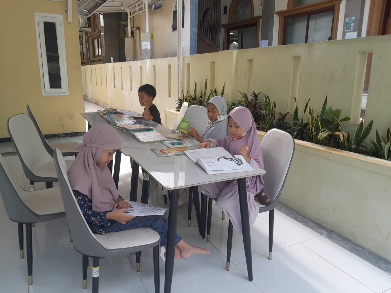 Alhamdulillah para pustakawan cilik juga bersemangat untuk membantu dan mengarahkan pengunjung untuk mau membaca buku.