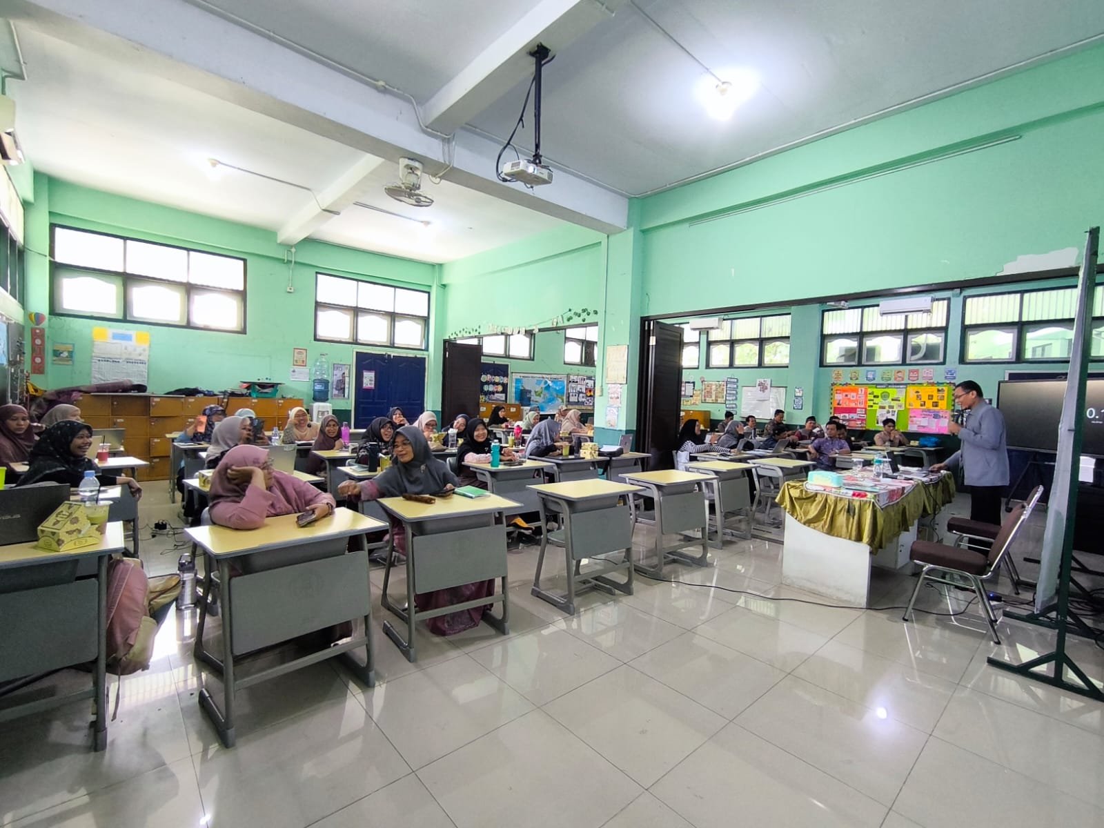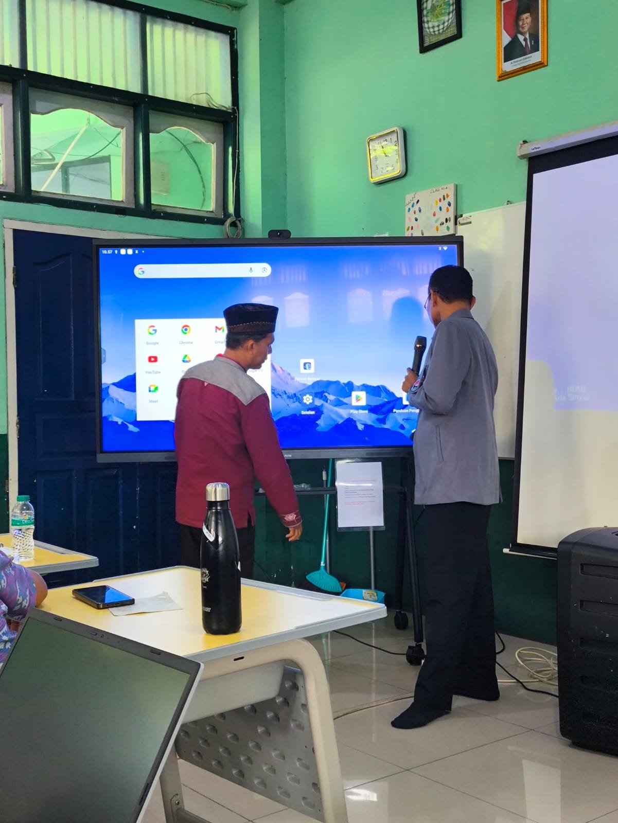 Bapak Hasan Basri, M.Pd. mengisi sesi kedua dengan tema "Pemanfaatan Aplikasi di Smart Board" untuk menunjang pembelajaran digitalisasi di kelas. Materi ini mengupas tuntas penggunaan Interactive Flat Panel dan integrasi aplikasi Canva untuk menciptakan kegiatan belajar mengajar yang interaktif. Peserta tidak hanya menyimak, tetapi juga diajak melakukan praktik langsung menggunakan media digital serta diberikan edukasi mengenai cara perawatannya.