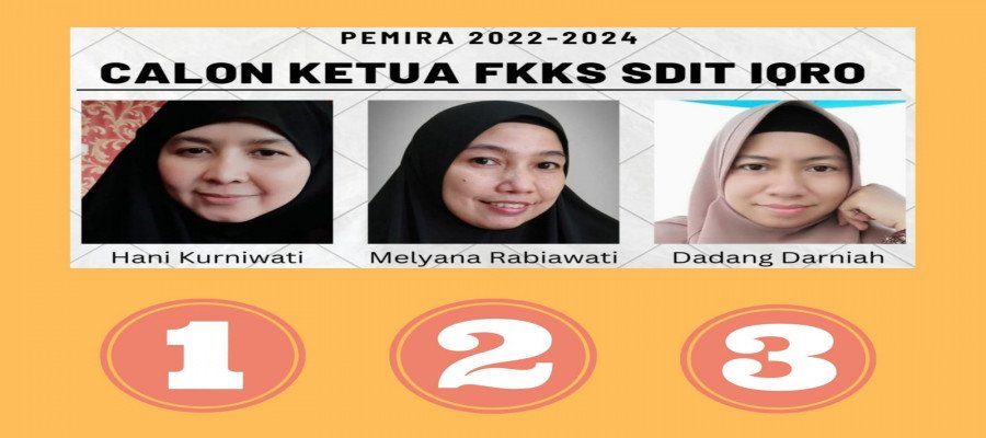 Ayah Bunda yang dirahmati Allah SWT, kami dari panitia PEMIRA (Pemilihan Raya) Ketua FKKS SDIT IQRO' periode 2022-2024 ingin menyampaikan informasi mengenai para kandidat calon ketua sebagai berikut :