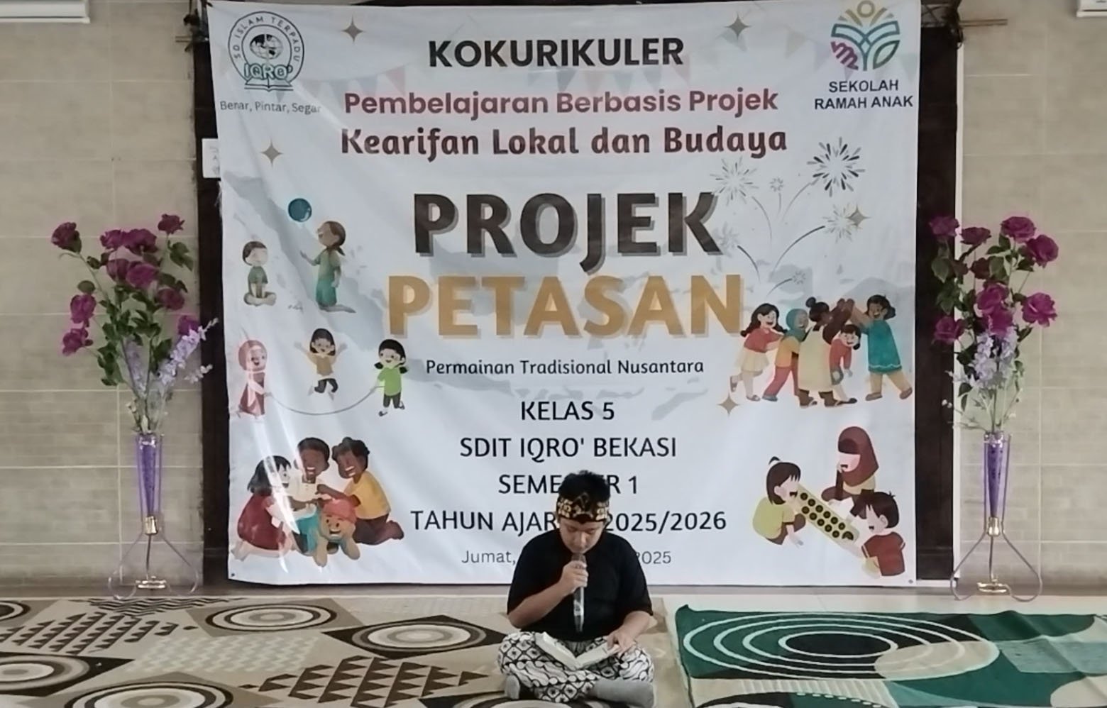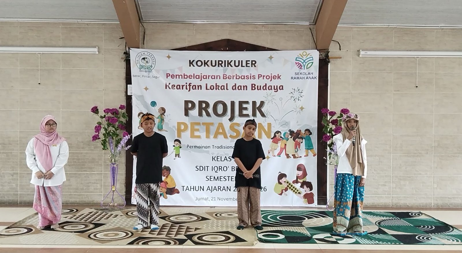 Jumat, 21 November 2025 – SDIT IQRO’ melaksanakan kegiatan Kokurikuler (Pembelajaran Berbasis Projek) bertema Permainan Tradisional Nusantara (PETASAN) untuk murid Kelas 5. Kegiatan berlangsung di Aula Lantai 2 SDIT IQRO’ mulai pukul 07.30 hingga 10.00 WIB, dengan tujuan utama mengenalkan permainan tradisional kepada peserta didik sekaligus melestarikan budaya lokal.