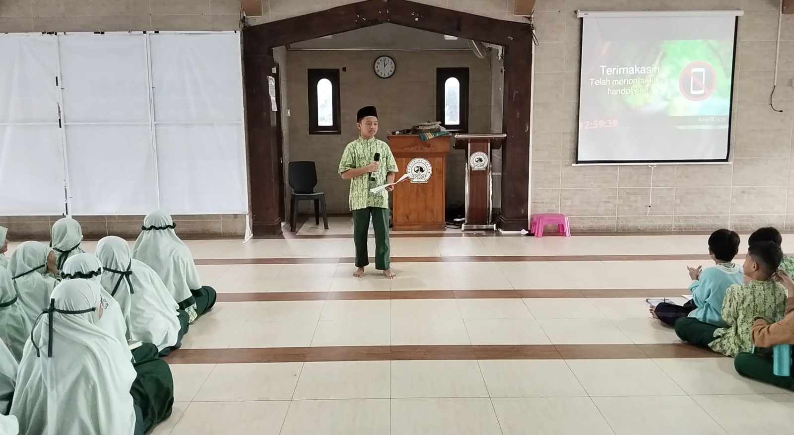 Dokumentasi: Kultum Ramadhan 1447 Hijriah disampaikan oleh M. Zihan Arraiyan Kelas 6B dengan tema Menahan Hawa Nafsu (Foto: Publikasi SDIT IQRO')