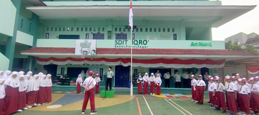 Murid SDIT IQRO' Dengan Tegap Mengikuti Upacara Pengibaran Bendera Merah Putih