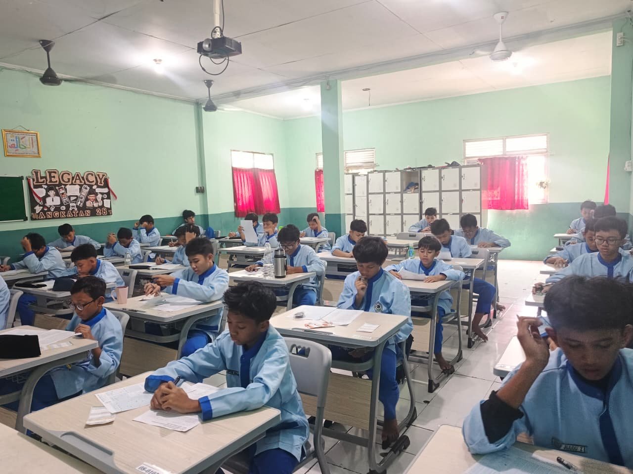 Para siswa mengikuti ujian dengan antusias dan disiplin, semua peserta hadir dengan kesiapan optimal, dan tidak ditemukan kendala yang berarti.