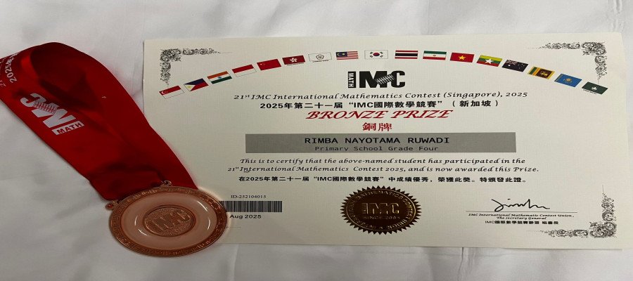 Singapura, 2 Agustus 2025 – Rimba Nayotama Ruwadi, murid kelas 5B SDIT IQRO', berhasil mewakili Indonesia dalam ajang bergengsi International Mathematics Contest (IMC) Singapore yang diselenggarakan pada tanggal 2 Agustus 2025 di Institute of Technical Education (ITE), Singapura.