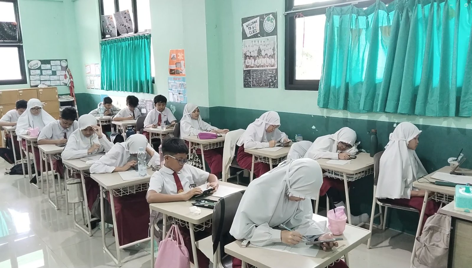 Kegiatannya dilaksanakan di kelas masing-masing dengan guru pengawas 2 orang guna memastikan pelaksanaan berjalan dengan jujur, disiplin, dan sesuai dengan prosedur yang telah ditetapkan. Serta 2 operator sekolah untuk memandu pelaksanaannya.