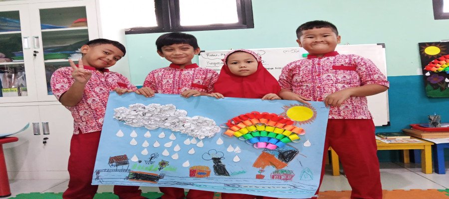 Kegiatan ini merupakan bagian dari pembelajaran dengan topik besar "Cuaca dan Cita-cita", di mana fenomena alam pelangi dipilih sebagai sub-topik untuk memantik imajinasi anak-anak.